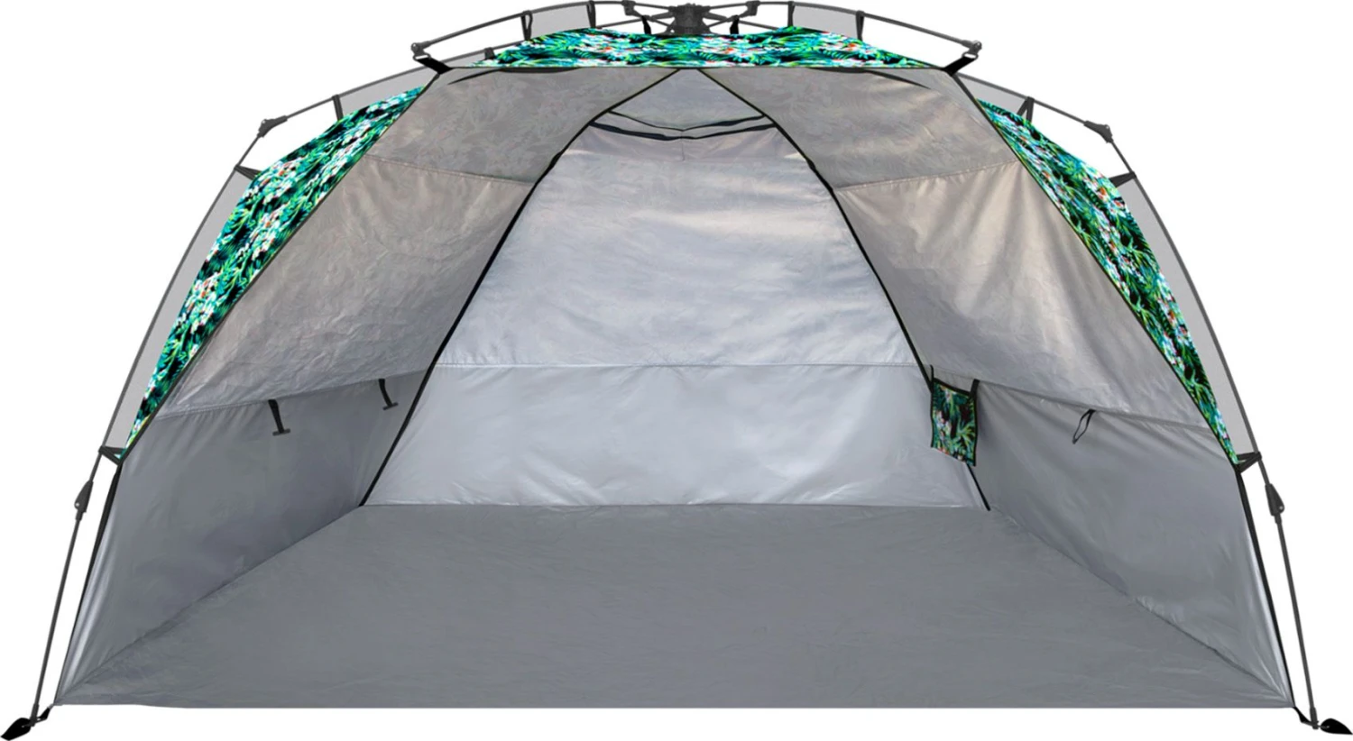 - Large beach tent built for stability in the sand