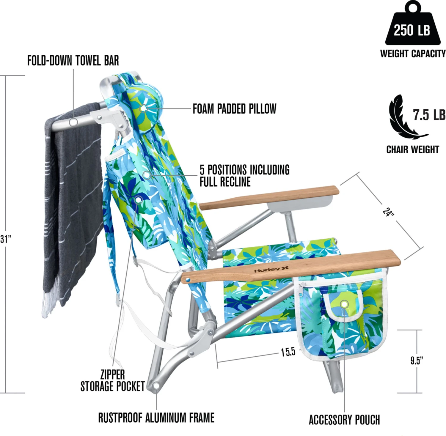 - Wooden armrests feature easy-adjust technology for quick use