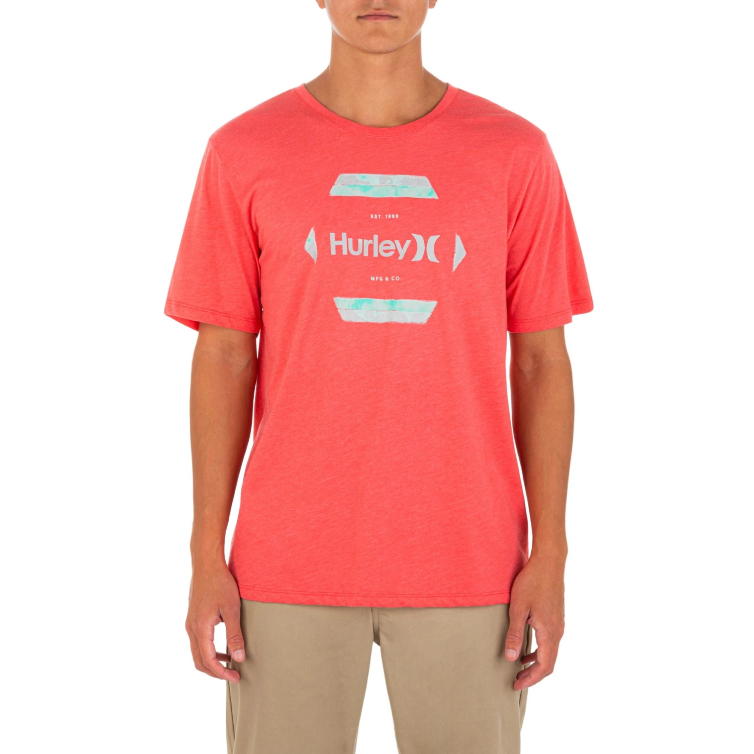 Hurley Men’s Natural Short Sleeve Graphic T-Shirt For Men Optic Red Heather